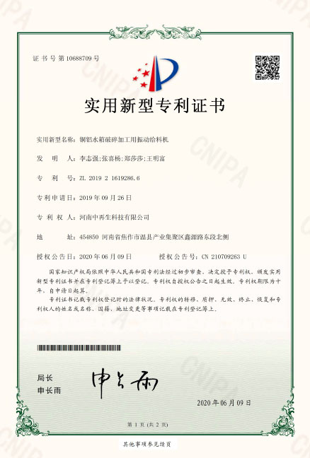 ZL2019216192866銅鋁水箱破碎加工用振動給料機